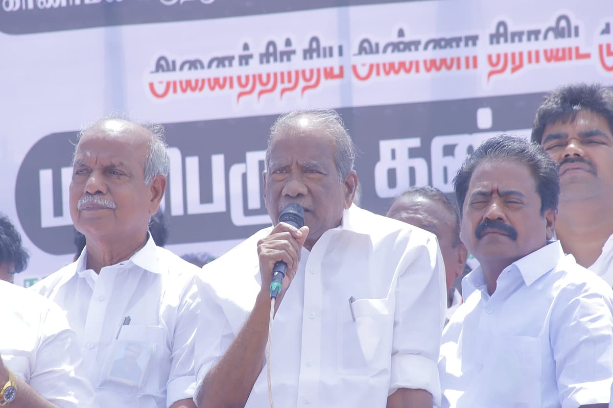 `எந்நன்றி கொன்றார்க்கும் உய்வுண்டாம் உய்வில்லை’ என்ற குறளை தஞ்சையிலே சொல்ல வேண்டும் என்பது என் எண்ணம். இந்தக் குறளுக்கு என்ன அர்த்தம் எடுத்து கொள்கிறீர்கள் என எனக்குத் தெரியாது. (கூட்டத்தில் நின்றவர்கள் வைத்திலிங்கத்தைச் சொல்கிறார் என்று முணுமுணுத்தனர்) உச்ச நீதிமன்றம், உயர் நிதீமன்றம், தேர்தல் ஆணையத்தில் நல்ல தீர்ப்பை பெற்று தெளிந்த நீரோடையாக தற்போது அ.தி.மு.க இருக்கிறது. இரட்டை இலை என்றைக்கும் சோடை போகாது. தி.மு.க ஆட்சிக்கும், முதலமைச்சர் ஸ்டாலினுக்கும் என் கண்டனத்தைத் தெரிவித்துக் கொள்கிறேன்” என்றார்.