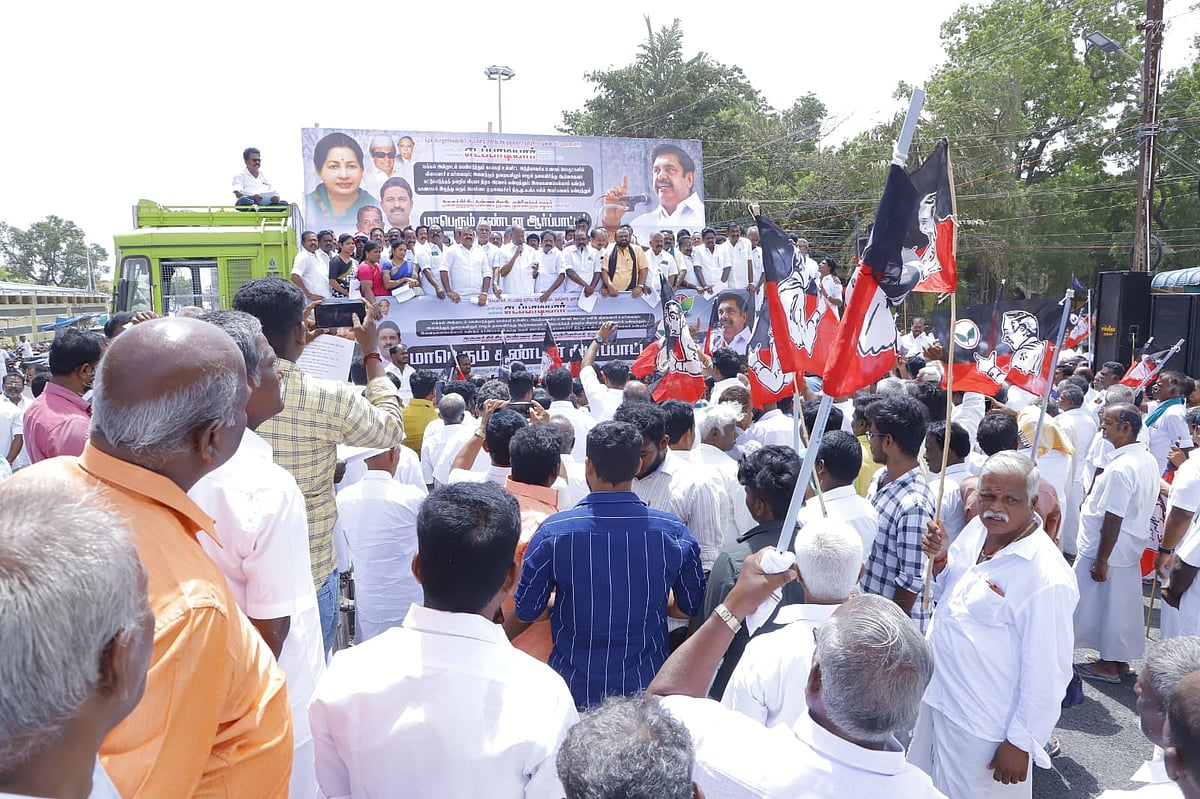 விலைவாசி உயர்வைக் கட்டுப்படுத்த முடியாத ஸ்டாலின் அரசைக் கண்டித்து கண்டன ஆர்ப்பாட்டம் நடத்துகிறோம். மின்சாரக் கட்டணம் தமிழ்நாட்டில் மூன்று மடங்கு உயர்ந்திருக்கிறது. சாலைவரியை அதிகப்படுத்தியிருக்கின்றனர். நிர்வாகம் செய்ய முடியாத, தெரியாத ஆட்சி தமிழகத்தில் நடைபெற்றுக் கொண்டிருக்கிறது. தி.மு.க ஆட்சியில் சட்டம் ஒழுங்கு எங்கே இருக்கிறது என கேட்கும் அளவுக்கு இருக்கிறது. உள்துறை, காவல்துறையை கையில் வைத்திருக்கக்கூடிய ஸ்டாலினால் சட்டம் ஒழுங்கைக் கட்டுப்படுத்த முடியவில்லை. எங்கு பார்த்தாலும் கொலை, கொள்ளை, பாலியல் வன்கொடுமைகள் நடக்கின்றன. அ.தி.மு.க ஆட்சியில் அரசு அலுவலர்கள் பயந்து நடந்தனர்.