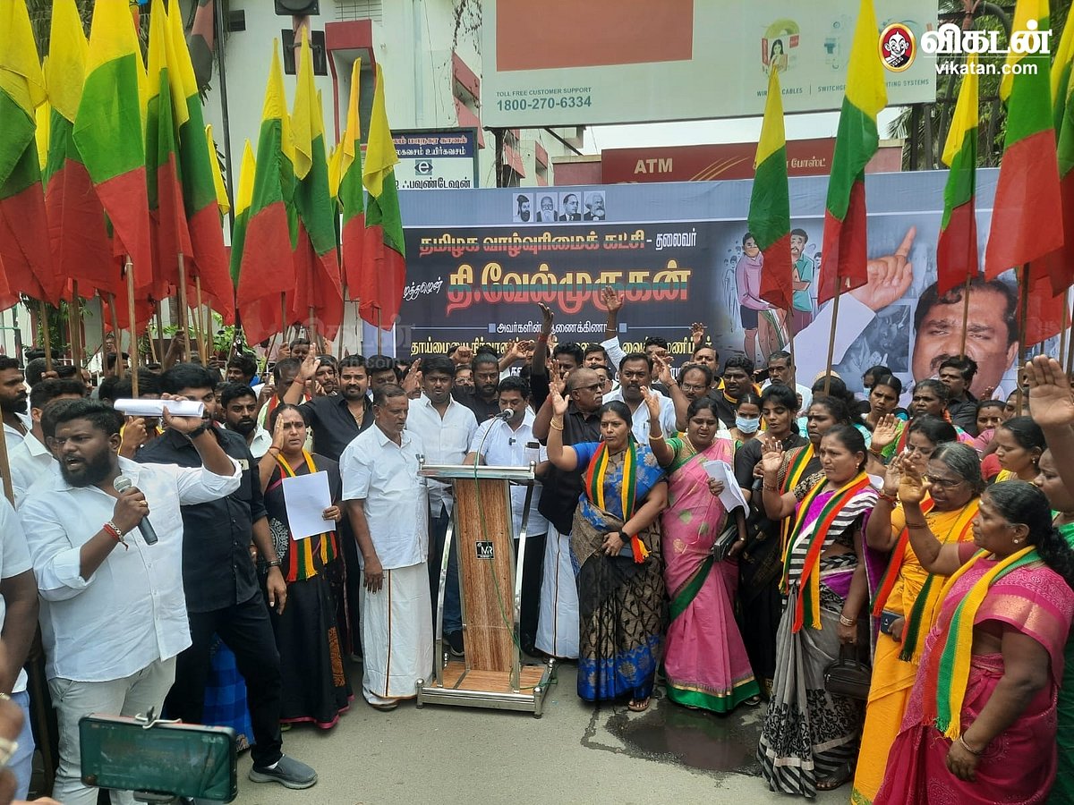 மணிப்பூர் விவகாரத்தில் பா.ஜ.க., அரசைக் கண்டித்து, கடலூரில் விடுதலை சிறுத்தைகள் கட்சியினர் கண்டன ஆர்ப்பாட்டம் நடத்தினர்.