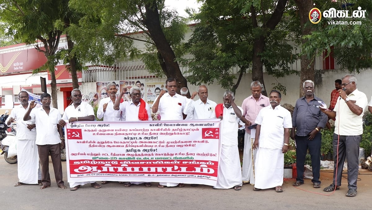 காவிரியின் குறுக்கே மேக்கேகதாட்டூவில் அணை கட்டும் முயற்சிகளைக் கைவிடக் கோரியும், நீதிமன்றத் தீர்ப்பின்படி உரிய நீரை வழங்கக் கோரியும் தமிழ்நாடு விவசாயிகள் சங்கத்தினர் தஞ்சையில் ஆர்ப்பாட்டம் நடத்தினர்.