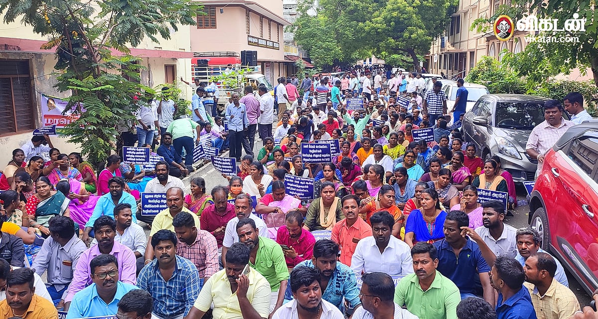 பொதுப்பணித்துறையில் பணி நீக்கம் செய்யப்பட்ட ஊழியர்கள், மீண்டும் வேலை கேட்டு போராட்டம்.