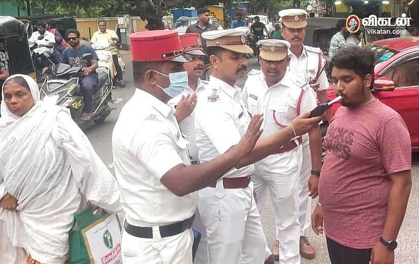 நகரப் பகுதியில் மது அருந்திவிட்டு வாகனம் ஓட்டுகிறார்களா என்பது குறித்து போக்குவரத்துக் காவல் அதிகாரிகள் சோதனை நடத்தினர்.