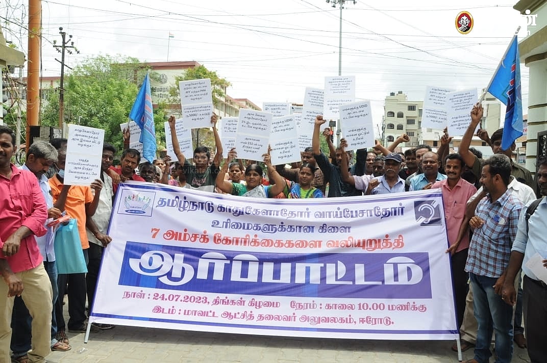 7 அம்ச கோரிக்கைகளை வலியுறுத்தி மாவட்ட கலெக்டர் அலுவலகத்தை முற்றுகையிட்டு மாற்றுத்திறனாளிகள் ஆர்ப்பாட்டத்தில் ஈடுபட்டனர்.