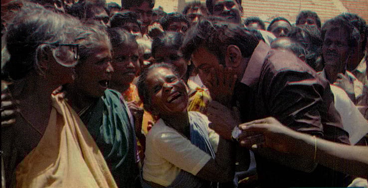 பின் சினிமாவுக்கு வந்தவர், ஈழப் பிரச்னைக்கு பிரபாகரனுக்கு ஆதரவு கொடுக்கும் விதமாக, தனது 100-வது படத்துக்கு ‘கேப்டன் பிரபாகரன்’ என்று பெயர் வைத்ததுடன், மூத்த மகனுக்கும் பிரபாகரன் என்றே பெயர் வைத்தார். இலங்கைத் தமிழர் பிரச்னைக்காகப் பிறந்தநாள் கொண்டாட்டங்களைத் தவிர்த்தார். தனது ரசிகர் மன்றத்துக்கு அவரே நிதி கொடுத்து மக்களுக்கான நலத்திட்டங்களை தொடர்ந்து செய்தார். கார்கில் போர் முதல் இந்தியாவில் எந்த மூலையில் பேரிடர் ஏற்பட்டாலும், முதல் ஆளாக நிவாரண நிதி கொடுப்பார். நடிகர் சங்கத்தின் மூலமாகவே, காவிரி நதி நீர் பிரச்னை உள்ளிட்ட தமிழ்நாட்டின் பிரச்னைக்காக குரல் கொடுத்தார். 1996-ல் ஜெயலலிதா ஆட்சிக்காலத்திலேயே எதிர்க்கட்சித் தலைவர் கருணாநிதிக்கு விழா எடுத்து தங்கப்பேனா பரிசளித்தார். ஜெயலலிதா, கருணாநிதி இருக்கும்போதே, கட்சியை 2005-ல் தொடங்கினார். தனது படத்துக்கு பிரச்னை ஏற்படும்போது யாரிடமும் போய் கைக்கட்டியது இல்லை.