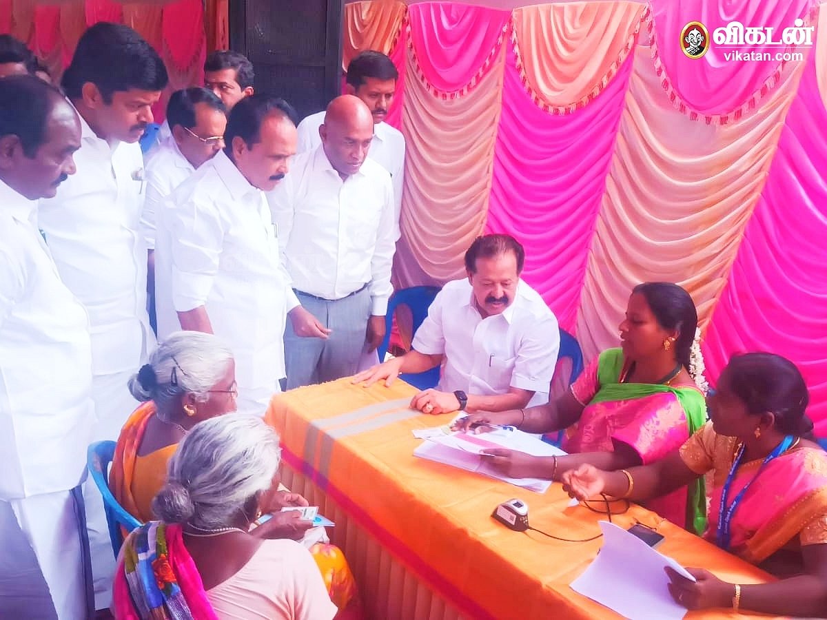 அமைச்சர் பொன்முடி விழுப்புரம், நகராட்சி அலுவலகத்தில், கலைஞர் மகளிர் உரிமைத்திட்டத்தின்கீழ் நடைபெறும் விண்ணப்ப பதிவு முகாமை நேரில் பார்வையிட்டு ஆய்வுசெய்தார்.
