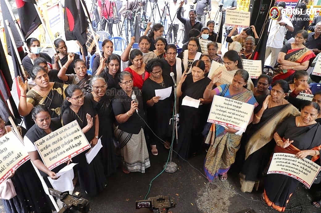 மணிப்பூரில் பெண்களுக்கு எதிராக நடைபெறும் பாலியல் வன்கொடுமைகளைக் கண்டித்து, திராவிடர் கழக மகளிர் அணியினர் ஆர்ப்பாட்டம் நடத்தினர்.