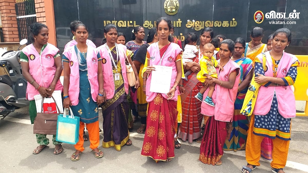 மக்களைத் தேடி மருத்துவம் திட்டத்தின்கீழ் பணி செய்து வருவதற்கு சம்பளம் முறையாக தராததைக் கண்டித்து, சேலம் கலெக்டரிடம் மனு அளிக்க வந்த ஊழியர்கள்.