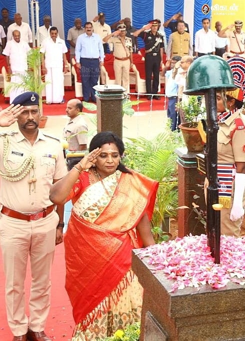 கார்கில் வெற்றி தினத்தையொட்டி புதுச்சேரி கடற்கரையிலுள்ள கார்கில் போர் வீரர்கள் நினைவிடத்தில் கவர்னர் செளந்தரராஜன், முதல்வர் ரங்கசாமி உள்ளிட்ட அமைச்சர்கள், முப்படை அதிகாரிகள் மலர் வளையம் வைத்து அஞ்சலி செலுத்தினர்.