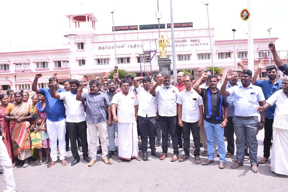 திசையன்விளையில் முத்தையா என்ற இளைஞர் கொல்லபட்டதற்க்கு எதிர்ப்பு தெரிவித்து, பல்வேறு அமைப்புகளைச் சேர்ந்தவர்கள் ரயில் நிலையம் முன்பு ஆர்ப்பாட்டத்தில் ஈடுபட்டனர்.