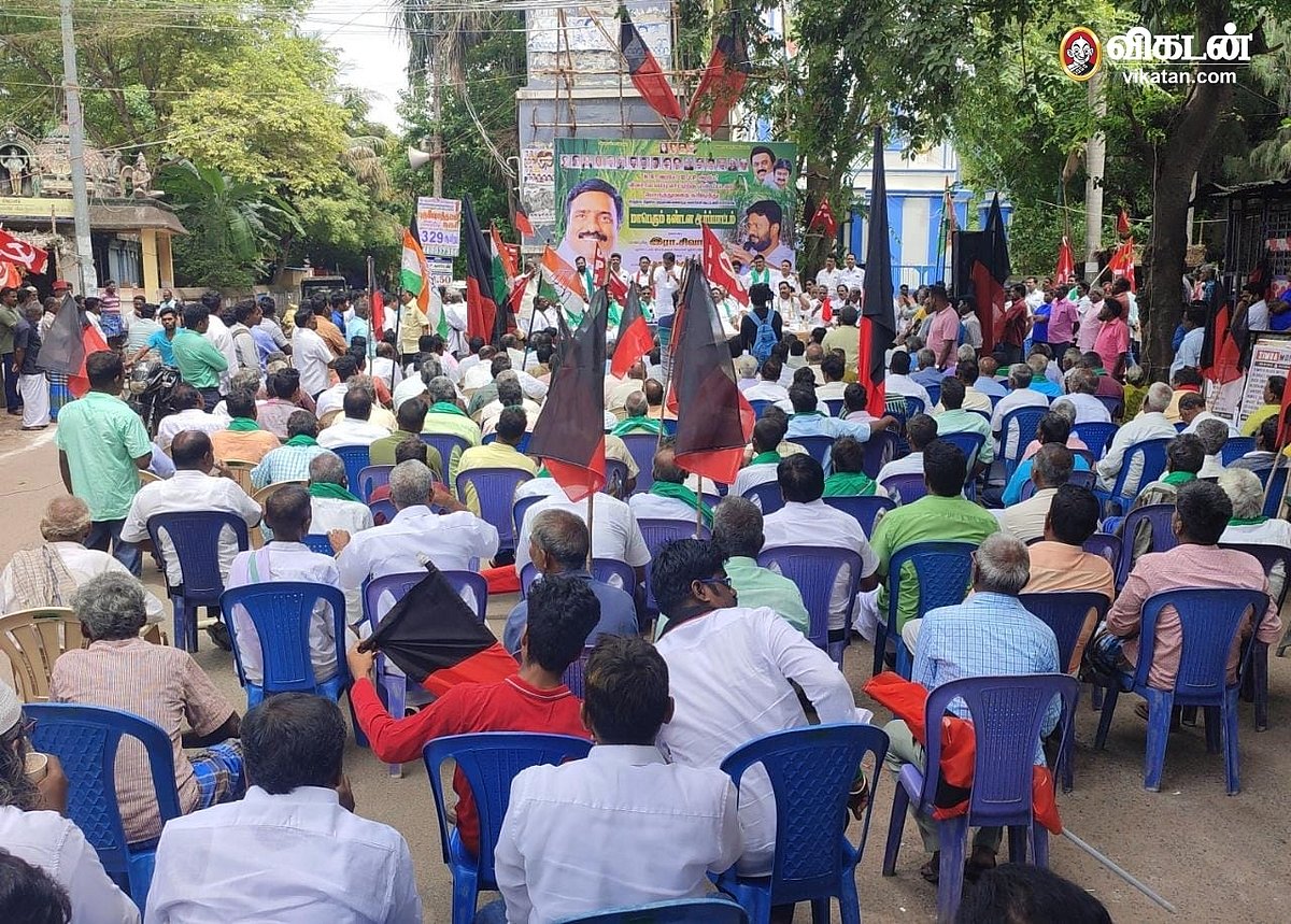 விவசாய மின் மோட்டார்களுக்கு ஸ்மார்ட் மீட்டர் பொருத்துவது தொடர்பான மின்துறை அறிக்கையைக் கண்டித்து, தி.மு.க உட்பட ஆதரவு கட்சியினர் ஆர்ப்பாட்டம் நடத்தினர்.